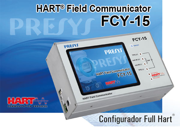 A Presys apresenta na Fenasucro o Hart Field Communicator FCY-15 – configurador Full Hart com a última biblioteca DD completa registrada no FieldComm Group. Essa funcionalidade possibilita futuras atualizações pelo usuário através da porta USB. Também permite a inclusão de novos arquivos DD não registrados, e acesso à configuração de toda a árvore de parâmetros de instrumentos com protocolo Hart, independente do fabricante ou modelo.